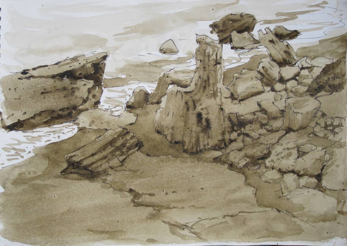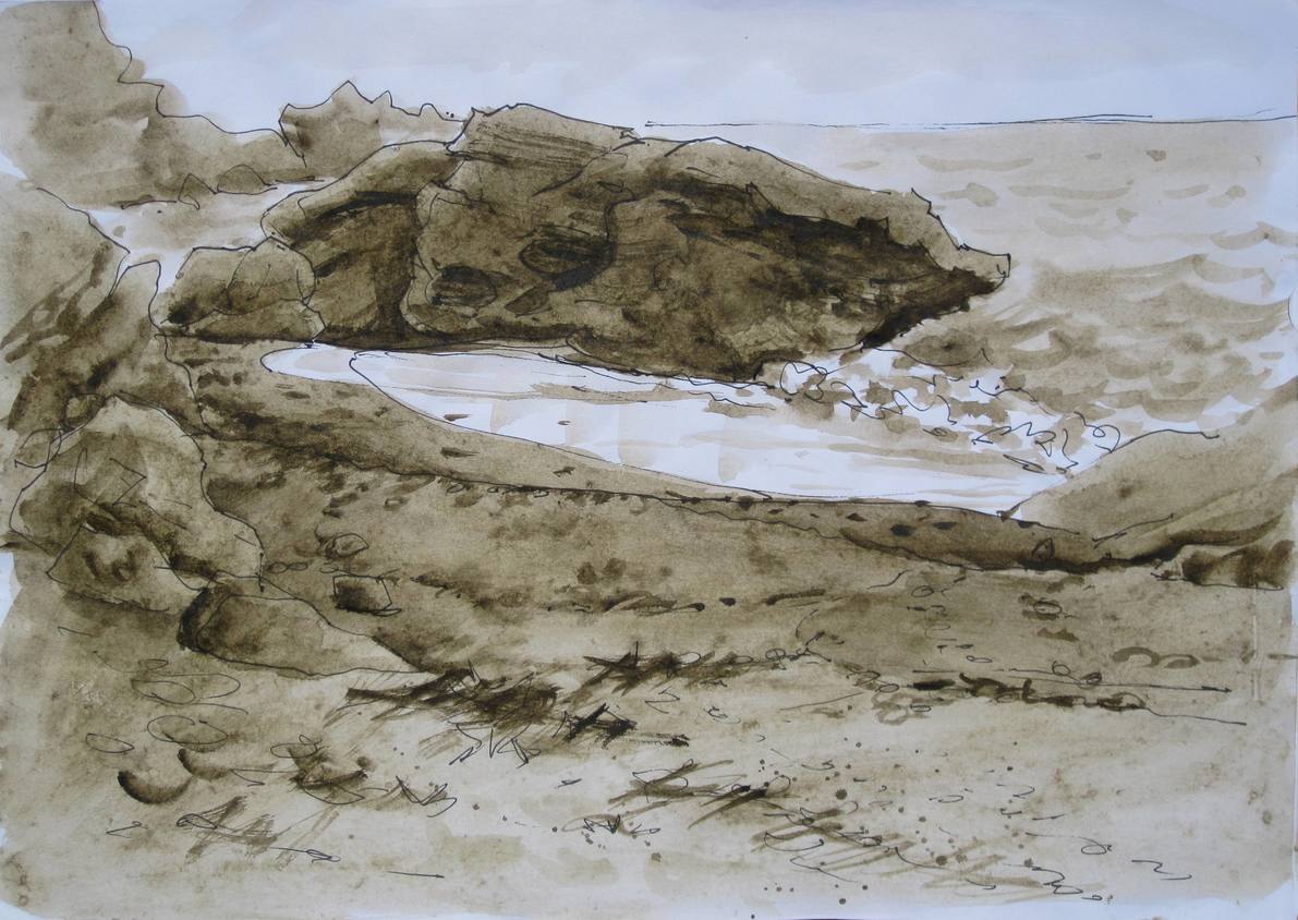 Així, el viatge sencer recorre els materials de pedra, òxid, aigua i paper. Vaig fer-ne un vídeo del procés d'elaborar el pigment primer i la pintura tot seguit.
