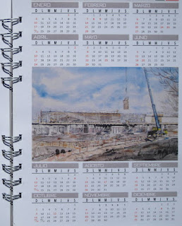 Fa anys havia dibuixat i pintat unes quantes vegades l'estació. En aquesta ocasió s'ha combinat la meva inclinació pel barri amb l'afició per les obres i l'interès per noves textures en aquarel·la.